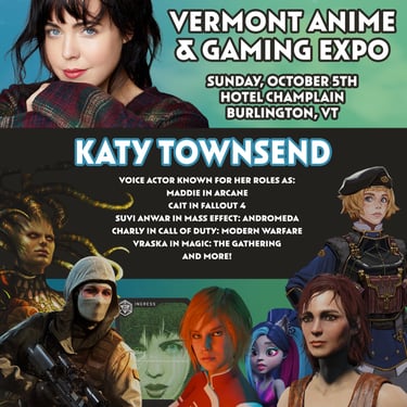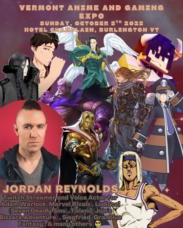 Don't Miss the very first Vermont Anime and Gaming Expo near beautiful Lake Champlain for a jam packed day of all things anime and gaming! Meet fellow fans, discover new video games and board games, participate in our Super Awesome Scavenger Hunt to win BIG prizes, collect Rare Loot, try your skill at the cosplay contest and karaoke room, and experience unforgettable moments with voice actors from your favorite series. Don't miss out on being part of our Origin Story!